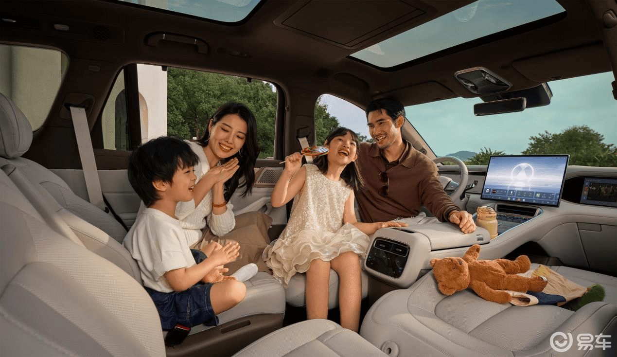 再说车内,简直移动客厅:帝瓦雷音响、冷暖冰箱、吸顶大屏、云栖座椅,一家人出门,不分“前排后排”,座座都是头等舱级体验。