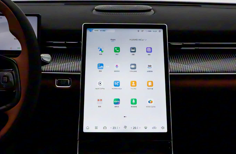 内饰方面同样采用新的设计语言,整体造型布局很新能源,简洁有科技感。15.6英寸中控屏配备8155芯片,搭载了最新的智能车机,支持AI语音大模型、四音区交互以及高德导航、爱奇艺、全品牌手机投屏等,在功能和体验感方面都和新能源车无异。用料上也非常大方,基本都是皮革软性材质和拉丝面板,档次感很足。