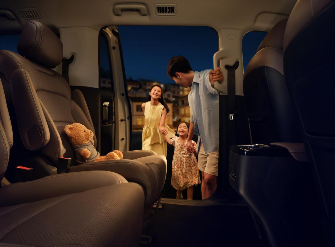 作为10万级MPV市场中唯一可选配电动侧滑门的车型,星光730在空间实用性上表现突出。其座舱内部空间长度达3331mm,横向肩部宽度最大1500mm,第三排顶棚高度超过1.2米,确保三排乘客均拥有宽裕的头部与腿部空间。第三排座椅支持魔术翻折,放倒后可形成1202L超大后备厢,在满员情况下仍可轻松容纳全家行李。B柱辅助拉手等细节设计,进一步提升了老人与儿童上下车的便利性与安全性。