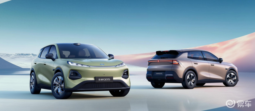 全新启源Q05采用长安启源数智飞翼2.0设计风格,让其有着不错的视觉辨识度,前脸配备封闭式格栅及分体式前灯组,LED日间行车灯采用贯穿式设计。车身配色方面,全新启源Q05提供松野绿、流金紫、月华银、云影灰以及云锦白5种外观配色,满足不同审美需求。车身侧面,全新启源Q05采用半隐藏式门把手,取消尾部三角窗的设计,取而代之的是更为粗壮的C柱,充电口位于左前翼子板处。车尾部分,全新启源Q05使用贯穿式灯组,中央采用全新的可发光车标,车顶配备高位刹车灯和后扰流板。