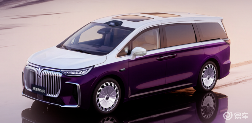 岚图梦想家山河整体延续了现款车型设计风格,采用鲲鹏展翅家族化设计语言,配备大尺寸垂瀑式镀铬前中网。新车新增一款全新“皓月紫云博雅”双色车身,采用银色以及紫色双拼。车身侧面采用平直的线条设计,采用实体门把手设计,采用大量镀铬饰条装饰。同时,新车搭载一款全新高定版“星漩轮毂”,提升豪华感。车身尺寸方面,新车长宽高分别为5315/1980/1820mm,轴距3200mm。