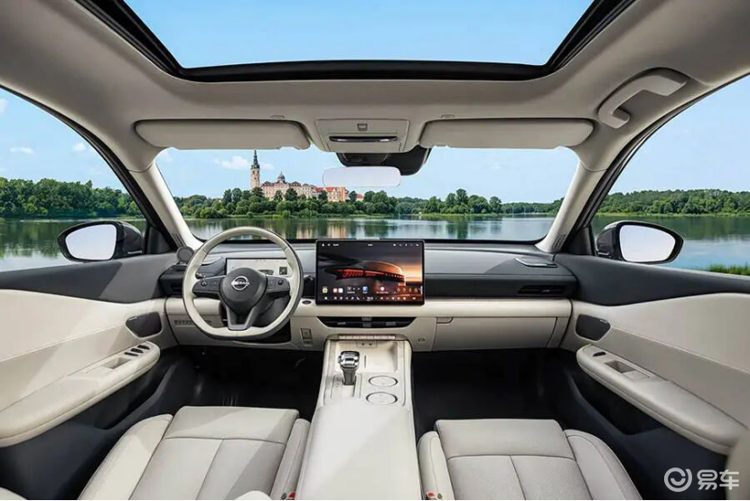 车内采用智能家居内饰风格以及环抱式座舱布局,提供晨曦岚白和穹宇黑灰两种配色供消费者选择,并运用大面积软包材质进行包裹,座椅采用日产独有Spinal人体学座椅设计,豪华质感十足。配置方面,新车对中控台进行重新设计,配备全新悬浮式仪表盘和15.6英寸中控屏,搭载华为鸿蒙座舱HarmonySpace 5和HUAWEI SOUND音响,方向盘采用全新的带有四向滚轮的设计,中控屏下方保留了物理按键,排挡采用专属定制设计的可升降式星环散射体,并配备50瓦风冷无线快充,预计将会有不错的科技感体验。