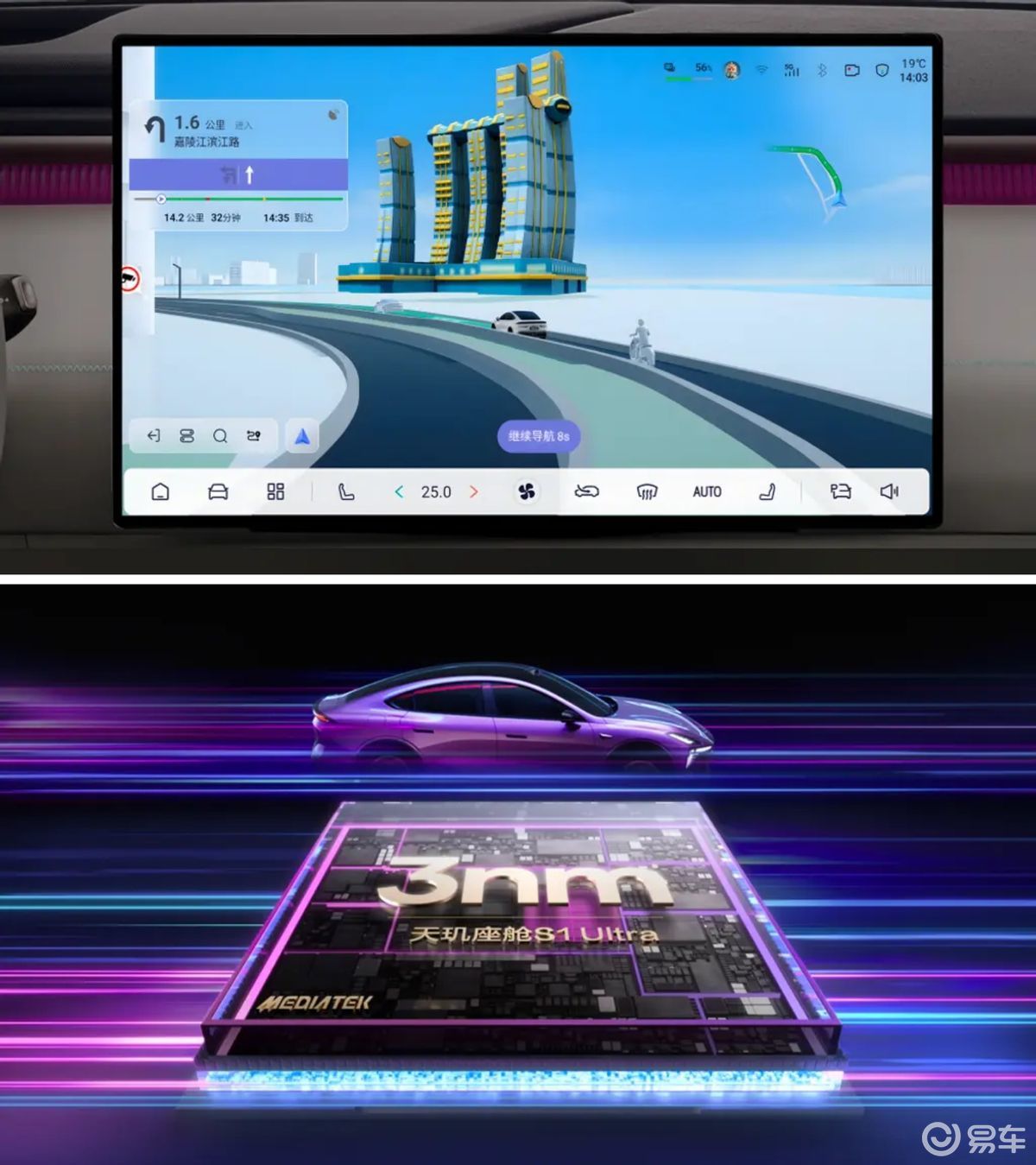 内饰方面,深蓝L06配备了天枢智能座舱,采用无仪表盘设计,以AR-HUD抬头显示系统和15.6英寸向日葵屏为主要交互界面。新车首搭3纳米车规级座舱芯片,支持智能语音助手等功能。此外,双层中央岛台的设计优化了车内储物空间,提升了实用性。