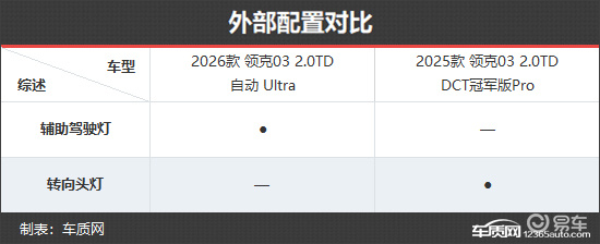 外部配置方面,新款领克03仅针对灯光系统进行了微调,增加了辅助驾驶灯,预示其搭载了高阶辅助驾驶功能。同时,老款车型上的转向头灯被取消,好在对日常使用影响不大。