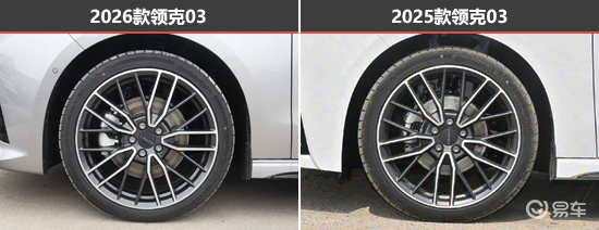 侧面变化不太明显,新款领克03长宽高分别为4700mm*1843mm*1460mm,轴距为2730mm,仅车身长度较老款有所增加。另外,新款领克03还增加了全新样式的18英寸动态光刃轮毂,而此次对比的新老款车型均配备19英寸轮毂。
