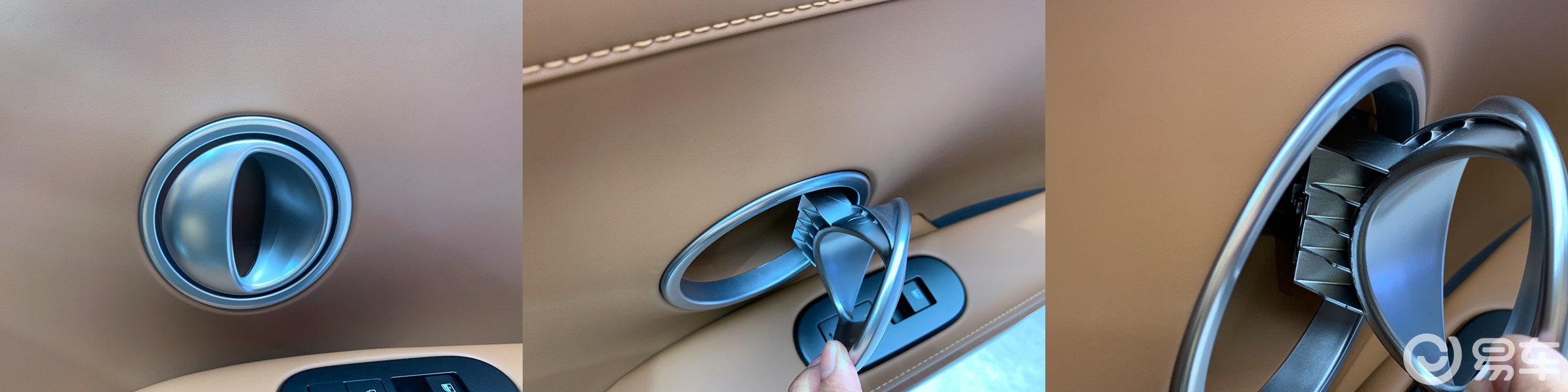 后续大家看车比较时,可以把内拉手拉到全开度,再松手看看回弹的过程,听听闭合的声音。这次发现了几款开合间挺有高级感的内拉手。