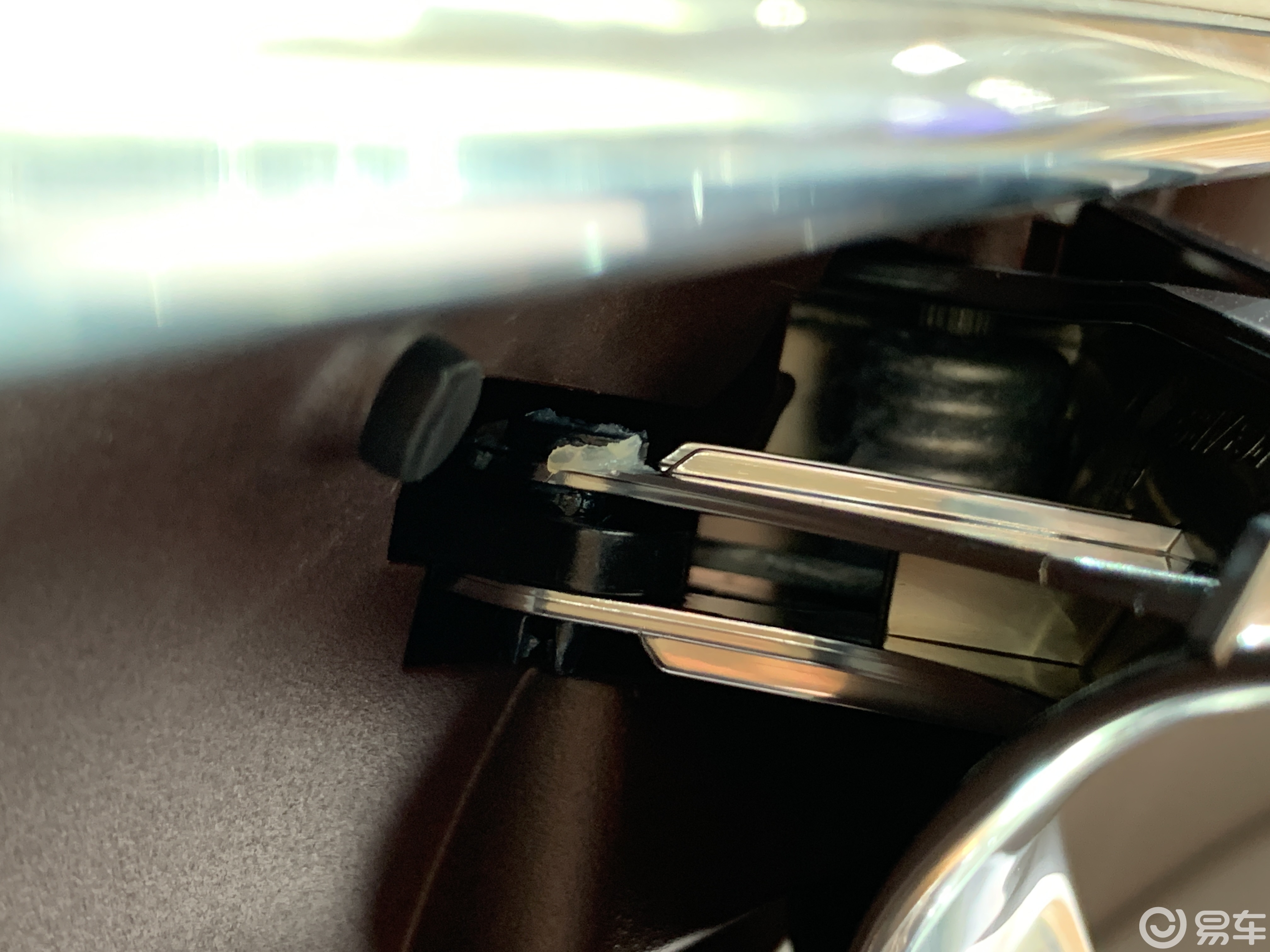 在几辆展车中,发现i8的内拉手弹簧上,涂满了润滑油。其他理想车型,包括现场其他能看到弹簧的车型,都未见此种做法。所以需要考虑当时这辆展车是否是工程车的因素。