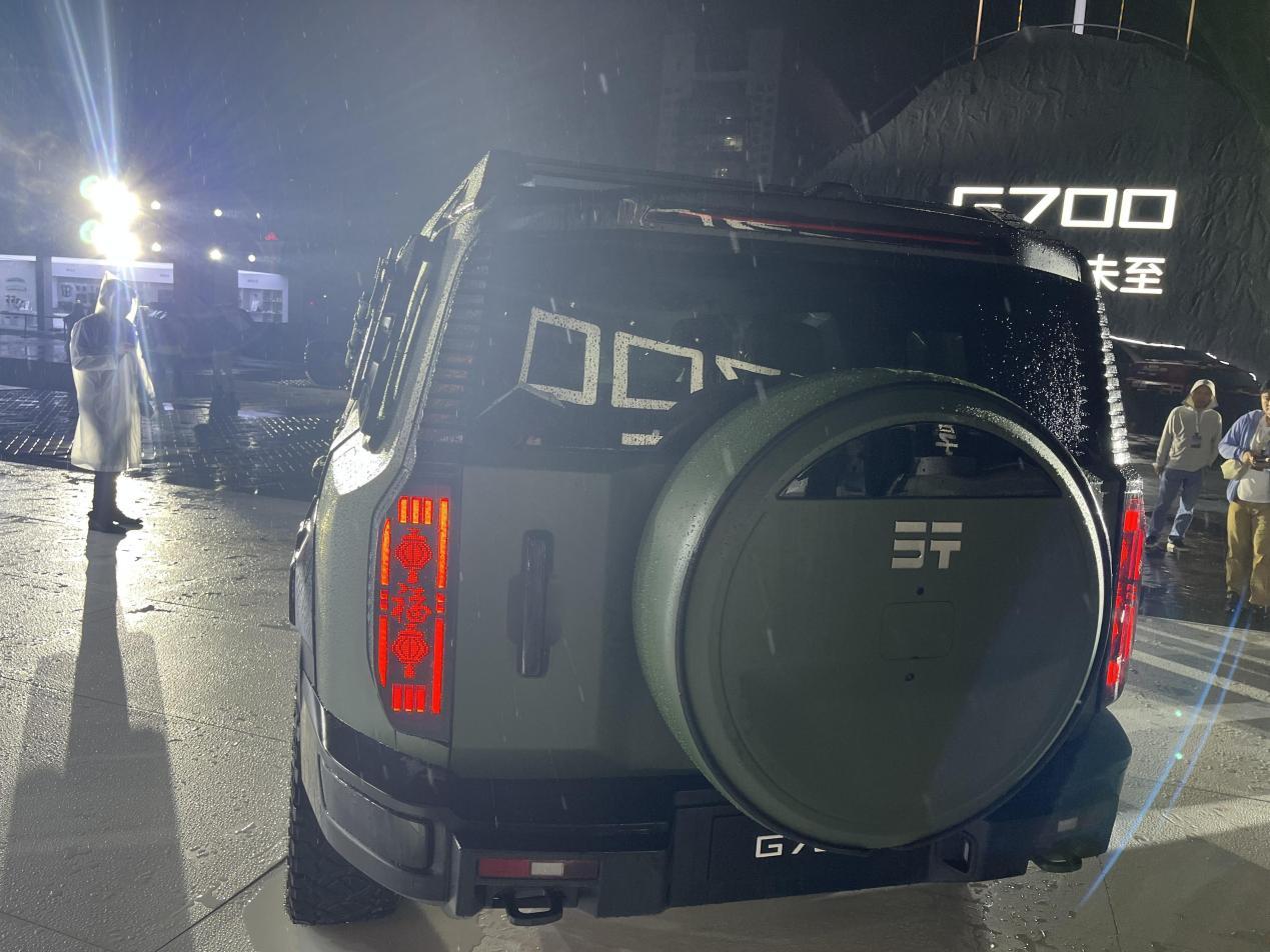 尾部采用窄上宽下的造型布局,越野SUV标志性的外挂备胎没有缺席,竖置尾灯则增加了辨识度。值得一提的是,纵横G700全车拥有30余处的改装预留接口,虽然它原厂状态下已经很野,但依然提供了个性化的选择。