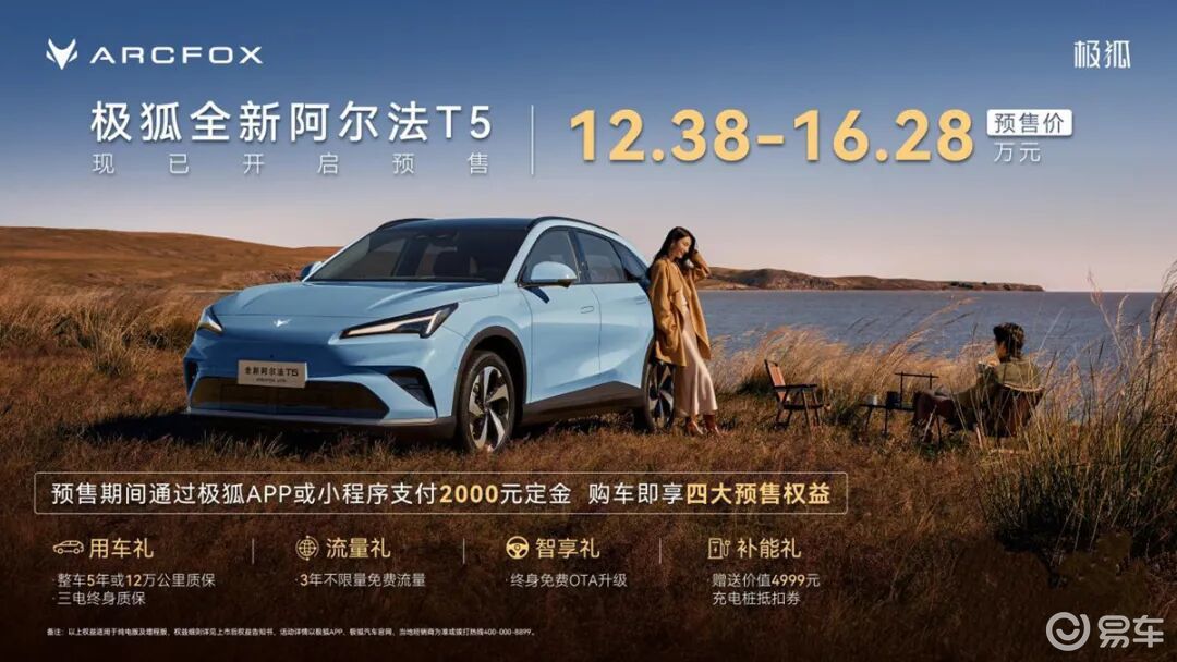 据悉,极狐全新阿尔法T5预售共推出6个版型,包含纯电和增程两种动力形式,预售价格12.38万元—16.28万元,以更年轻的设计风格、更强的动力续航、更智能的操控、更舒适的驾乘和天花板级的安全健康,为年轻家庭用户带来了中级SUV的新选择。即日起通过极狐APP或小程序支付2000元定金,购车可以享受整车5年或12万公里质保、三电终身质保、3年免费不限量数据流量、终身免费OTA升级、价值4999元充电桩安装抵扣券等四重礼遇,再次刷新中级SUV的价值标准!