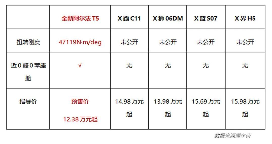 全新阿尔法T5采用1500MPa高强度热成型钢,高强钢及铝合金占比高达81%,扭转刚度达到了47,119N•m/deg,与之对比劳斯莱斯幻影的扭转刚度是40,000N•m/deg,“公路坦克”实至名归。
