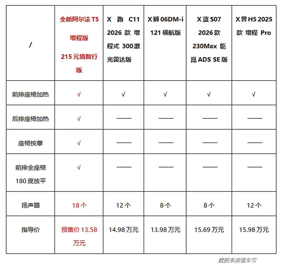 从年轻时尚外观设计到北汽神擎增程的硬核加持,从全系标配宁德时代电池到全球首个搭载骁龙8775舱驾一体解决方案,从麦格纳世界级品质到“近0醛0苯”健康座舱,全新阿尔法T5“一车满足全家需求”,让中级车“不再中级”,带给众多年轻家庭时尚动感、驾乘自由、智能舒适、可靠安全的SUV新体验。